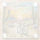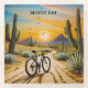 sunset painting of a bicycle in the desert surrounded by cacti