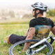 sunset painting of a bicycle in the desert surrounded by cacti