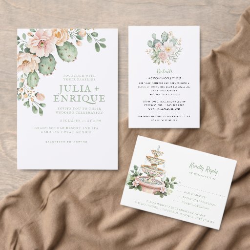 This beautiful cactus themed RSVP card features watercolor design perfect for your desert wedding. Colours used include, olive green, sage green and light pink.