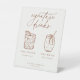 Modern minimalist signature drinks, wedding sign. Features, Orange Crush and White Sangria Cocktail Illustrations. Trendy typography design style template in burnt sienna text on sandy beige background.