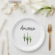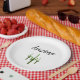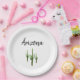 Desert Southwest paper plate, with a green saguaro cactus design on a white background. With black customisable typography lettering, you can add your own text. Great for adding a touch of Arizona to your party accessories.