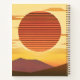 Journal in a retro, minimalist desert sunset over hills, in shades of deep rust orange, golden yellow, and brown, with customisable text