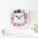 Design a 12 Photo Collage Personalized Pink Square Wall Clock
