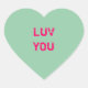Create your own customised conversation heart design on a heart-shaped sticker for Valentine's Day. You can change the "LUV YOU" message to something that suits your sweetie. You can also choose the "Customise it!" feature and change the heart's background colour.