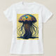 Design an ethereal t-shirt capturing the grace and movement of a jellyfish on pale black paper. with light colour background for t-shirt design