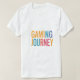 The "Gaming Journey" t-shirt design features a vibrant, multi-colour font that captures the dynamic and exciting world of gaming. The text is bold and eye-catching, making it a perfect statement piece for any gamer.