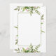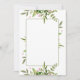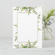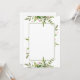 This is a blank wedding invitation for you to customise; it features leaf sprays in shades of olive and sage green, with small pink flowers and a central rectangle to add your own wording.