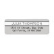 An elegant return-address-label with your name written in a white stripe on pale grey background with address