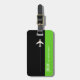 An elegant item with the graphic image of a white plane on black and green background, personalised with your own name and initials, to identify your belongings on your next travel