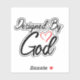 “Designed by God” custom-cut vinyl stickers - Featuring a pretty script font paired with vibrant red heart. This sticker is a meaningful reminder you are created by God. Choose between a glossy white background, matte white or glossy transparent. Available in 6 sheet sizes. Perfect fit for your laptop, water bottle, car window, planner, or favourite journal.