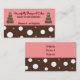 A modern business card in chocolate and white polka dots with a pink background. Perfect card for a baking company, cake decorating business, sweets, desserts, catering, restaurants, etc.