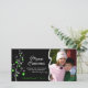 This Christmas photo card design is customisable with your own family name and photo! There's a black background, and the photo is separated from the design by a meandering, silvery ribbon. A delicate, designer Christmas tree with sophisticated bright green snowflake ornaments is the motif of these design, followed by a "Merry Christmas" and the rest of the text is customisable! Personalise with your own Christmas greeting or wishes, and your own family names. The final text reads "Christmas 2010" in orange.