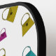 A design for the fashion minded pickleball player. Mini designer handbags is fashionable colours on a white background on the front of paddle and on a black background on the back of paddle. Change background colour as desired.