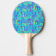 Designer blue retro Monogram Ping Pong Paddle. Retro pattern available on both sides or choose red or black for back.