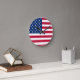 Order this patriotic wall clock in 3 styles using the customise it tool on this page. This round wall clock has the image of the American flag for all you patriotic design lovers. Celebrate the 4th of July using this clock on the wall for your guests. Celebrate America's birthday by using this clock in your home, office, or apartment.