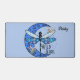 Desk Mat with a colourful blue moon and dragonflies. The name on the mat can be changed. Thanks to Creative Fabrica for some of the elements in the design.