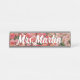 I was very pleased when I received my name plate. The brightness of the yellow caught my eye immediately because it was so true to color of the picture. The sturdiness of the material lets me know it won’t get bent or broken easily. The sturdiness of the card stock is a plus as well. The colors even on the chalkboard and apple are true to life colors. The apple looks like you can take a bite out of it.