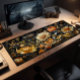 A beautiful illustration of bumble bees do what bumble bees do, in the midst of a bunch of golden wildflowers, personalised desk pad.