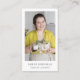 This business card features a professional photo layout with a baker, dessert caterer. The reverse side features the contact info, and social media. You can customise the text size, font, to fit your own personal style. Replace this sample place holder photo with your own portrait orientation business card.