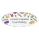Name tag for a restaurant, diner, or similar with doodled ingredients.
