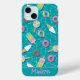 This dessert phone case has a pattern with cute pool floats on top of a second teal blue pool pattern. There are six different sweet treat floats. Ice cream cone, ice pop, lollipop, swirled candy, and two doughnuts. You can make this pattern larger or smaller. Personalise this with your own name or customise to take the name off for just the pattern.