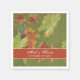 Matching Personalised reception decor dessert sized napkins with bride and groom's names and wedding date. Coordinates with the wedding invitation set of the same name. COLOR PALETTE: green,gold, yellow, orange and red. DESIGN COLLECTION: Hand painted in watercolors by Audrey Jeanne Roberts, this "Autumn Grape Leaf Batik" Wedding collection has invitations of all sizes and shapes. Perfect for fall weddings and those being held in unique places such as at a winery or in wine-country. The rust orange banner can be changed to another complimentary colour should you wish it. The artwork has a beautiful aged, textured depth to it. Layers of antiqued, aged, distressed, watercolored grape leaves in a batik style over textured watercolor washes work together for this rich and elegant design. There are a wide range of products available with this collection.