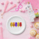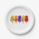 This fun plate and bowl style says, "Dessert Vibes," a play on the phrase "Desert Vibes." It's decorated with cursive text and a popsicles image. Great for dessert at your next party!