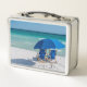 A metal lunch box featuring a couple of lounge chairs and an umbrella away for someone to occupy them on the white sandy beach of Destin, Florida. Looking for more products? Visit my store: http://www.zazzle.com/timelessmomentsphtgy