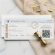 Announce your destination wedding in style with this Elegant Minimal Boarding Pass Wedding Invitation and RSVP, designed to look like a modern airplane ticket while maintaining a clean, sophisticated aesthetic. Perfect for travel-themed or destination weddings, this unique invitation presents your wedding details in a realistic boarding pass layout your guests will love. The design features a sleek minimalist format with faux gold airplane accents, stamp-style seal details, and a softly faded world map background for a refined travel-inspired look. A convenient QR code RSVP runs along the side of the boarding pass, allowing guests to easily scan and respond — combining modern functionality with stylish design. The reverse side features space to add five photos, accented with a cute heart and airplane design to create a personalized keepsake your guests will treasure long after the celebration. Easily customize colors, names, dates, and wording to match your wedding theme, whether it’s romantic, modern, or luxury destination-inspired. Perfect for destination weddings, travel lovers, aviation themes, or couples wanting something unique yet timeless, this boarding pass invitation blends elegance with a fun travel aesthetic. Design and layout by ©Moodthology Papery.
