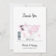 This design features a boarding pass theme. It showcases a pink map of the world along with two aeroplanes making a heart shape as they travel around the world. This destination themed wedding design is set out like a boarding pass with the date of the wedding personalised in the squares. The reverse side showcases the boarding pass with personalised wedding date. A romantic destination design with an elegant touch. Ideal for a destination wedding no matter where in the world. The perfect all season travel wedding thank you card design. Matching wedding invitations and other stationery items are also available.