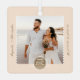 Celebrate your love story with the Destination Wedding Map Photo Collage Keepsake Metal Ornament. The front side features an elegant three-photo collage layout to showcase your favourite memories from your destination wedding or honeymoon. A romantic “Happily Ever After Begins” script accents the design, along with a customisable passport stamp personalised with your wedding date and location name. A detailed world map with an aeroplane and heart pinpoint highlights your special place — simply move the heart in the design tool to mark your destination. The reverse side offers a full-photo layout to display one cherished image, personalised with your names, location coordinates, and a custom monogram passport stamp. A meaningful keepsake for newlyweds or as a thoughtful gift, this ornament beautifully blends travel, romance, and personalisation, making it the perfect reminder of where your forever journey began. Original design by ©Moodthology Papery