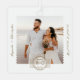 Celebrate your love story with the Destination Wedding Map Photo Collage Keepsake Metal Ornament. The front side features an elegant three-photo collage layout to showcase your favourite memories from your destination wedding or honeymoon. A romantic “Happily Ever After Begins” script accents the design, along with a customisable passport stamp personalised with your wedding date and location name. A detailed world map with an aeroplane and heart pinpoint highlights your special place — simply move the heart in the design tool to mark your destination. The reverse side offers a full-photo layout to display one cherished image, personalised with your names, location coordinates, and a custom monogram passport stamp. A meaningful keepsake for newlyweds or as a thoughtful gift, this ornament beautifully blends travel, romance, and personalisation, making it the perfect reminder of where your forever journey began. Original design by ©Moodthology Papery