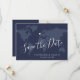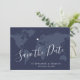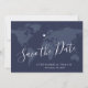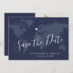 Navy blue and white world map save the date card for a destination wedding with a moveable heart location marker and your engagement photo alongside cute and elegant modern typography that's pretty and minimalist. Perfect for an adventure destination wedding anywhere in the world. Click CUSTOMIZE FURTHER to move the heart, change the background and text colour, change fonts. Check our designer shop for coordinating items!