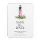 These custom save the date magnets feature a watercolor Jupiter, Florida lighthouse. The words "Save the Date" are typeset in charcoal grey over a crisp white background. use the template fields to type your personalised information. To see more of this beach wedding theme visit www.zazzle.com/dotellabelle