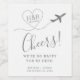 Personalised travel theme destination wedding wine labels perfect for putting on a bottle of wine as part of a hotel welcome kit because they're easy to transport anywhere in the world and put on local wine bottles purchased once you arrive at your wedding location. Practical as a welcome gift because guests will have time to drink it while they are on your wedding trip. Featuring our minimalistic and simple cute romantic aeroplane heart monogram wedding logo and elegant script Cheers with retro inspired typography, all colours can be changed to match your welcome kit or wedding colours.