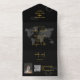 A black and gold destination wedding passport design with gold world map, airplane and travel elements. This design is ideal for all Spring, Summer, Fall and Winter destination weddings. An elegant black and gold wedding travel design with passport layout, world map and custom couple photo. A modern destination wedding invitation design with elegant elements. Matching wedding stationery items and other wedding invite formats are also available.