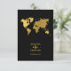 A black and gold destination wedding passport design with gold world map, airplane and travel elements. This design is ideal for all Spring, Summer, Fall and Winter destination weddings. An elegant black and gold wedding travel design with passport layout, world map and custom couple photo. A modern destination wedding RSVP card design with elegant elements. Matching wedding invitations and other stationery items are also available.