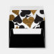 Glitzy faux gold glitter and black card suits are a classy addition to the Destiny wedding suite and will tie the whole suite together and get guests excited to read the mail. This black A2 envelope is perfect for reply cards and features a pre-printed address along with a coordinating printed liner.