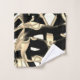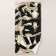 Destroyed beige and black scrap or ribbon on clear bath towel set