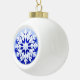 Detailed Blue Snowflake Ceramic Ball Christmas Ornament