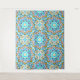 Ornate detailed ethnic colourful geometric pattern. Blue white and tan colours.