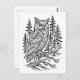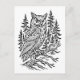 Detailed Horned Owl in Pine Forest Line Art Postcard
