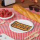 A detour road sign in black on an orange background. This design looks really effective on this Paper Plates