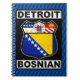 Classic road style design shield, with the text Detroit Bosnian, and the flags of the City of Detroit and Bosnia and Herzegovina.