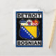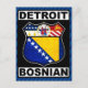 Classic road style design shield, with the text Detroit Bosnian, and the flags of the City of Detroit and Bosnia and Herzegovina