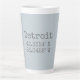 Modern latte mug design features Detroit Michigan Latitude and Longitude map coordinates in distressed urban font