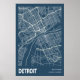 Detroit Michigan City Map Line Art Blue Print
