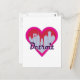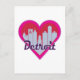 Show your Detroit love with this artistic render of the city's signature skyscrapers in powder blue on a red, hot pink, and lavender heart background.