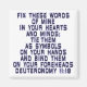 Fix these words of mine in your hearts and minds; tie them as symbols on your hands and bind them on your foreheads. Deuteronomy 11:18