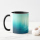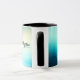 Coffee mug with inspirational quote scripture depicts a modern abstract art background in shades of blue. It features an encouraging portion of Bible Verse Deuteronomy 31:6, "do not fear, I go with you."